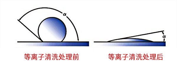 可以看到,經(jīng)過低溫等離子 放處理表面a接觸角均有下降,接觸角在10度以下如上圖所示